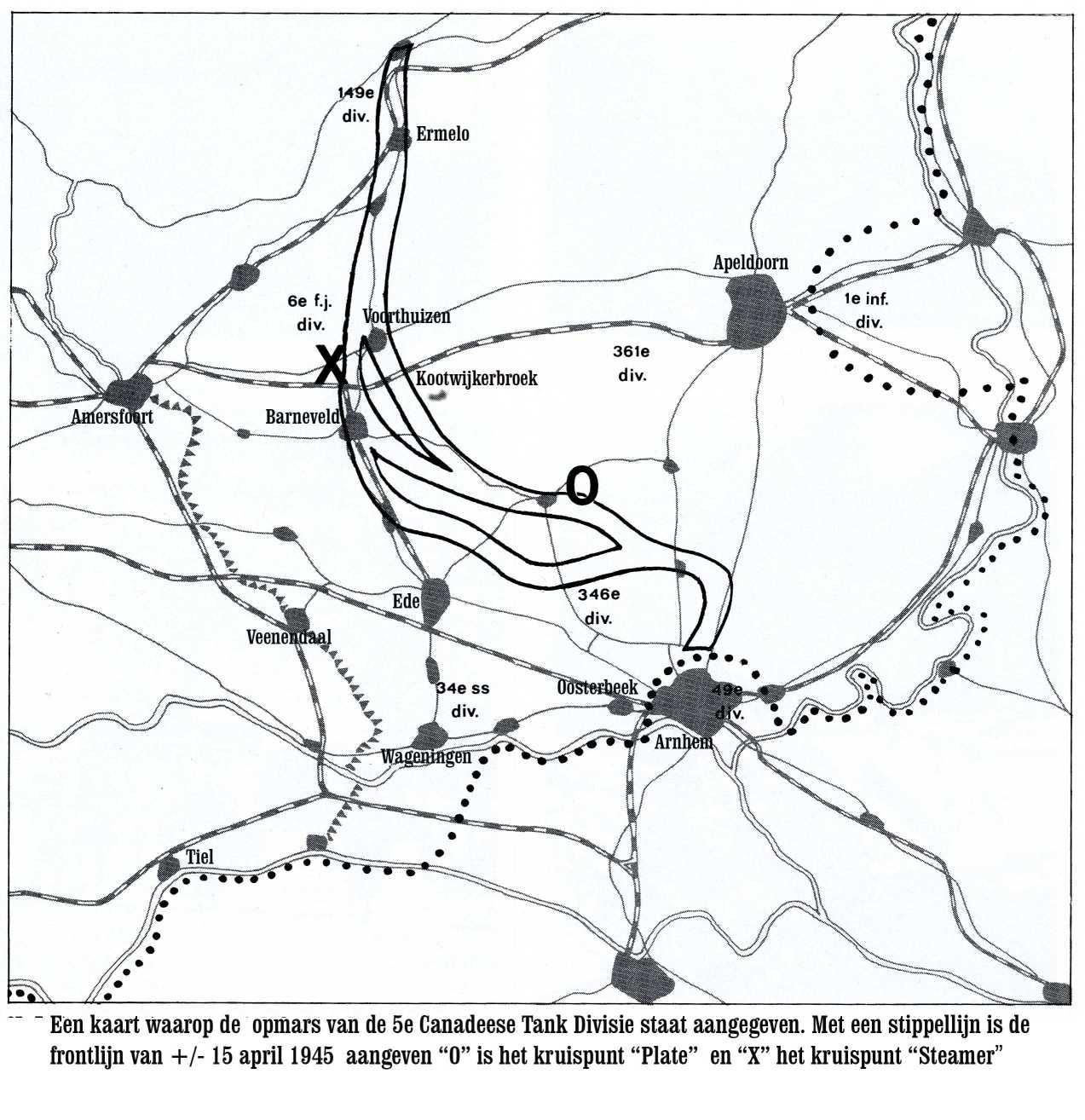 Bovenstaande kaart is met toestemming van de auteurs overgenomen uit de Bevrijdingskroniek West-Veluwe van Evert van de Weerd en Gerjan Crebolder uit de Schaffelaarreeks nr 8, BDU Barneveld, 1981